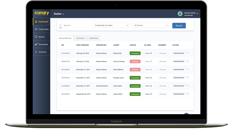 Canary’s digital authorizations will ensure you never have to shuffle through the binder full of authorizations or worry about securing guest information. Digital Authorizations drive efficiencies, manages pci compliance, and creates a superior guest experience.